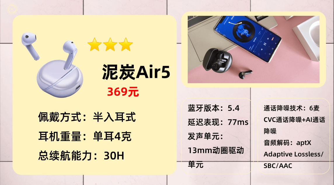入选产品第五名:泥 炭A ir5蓝牙耳机
