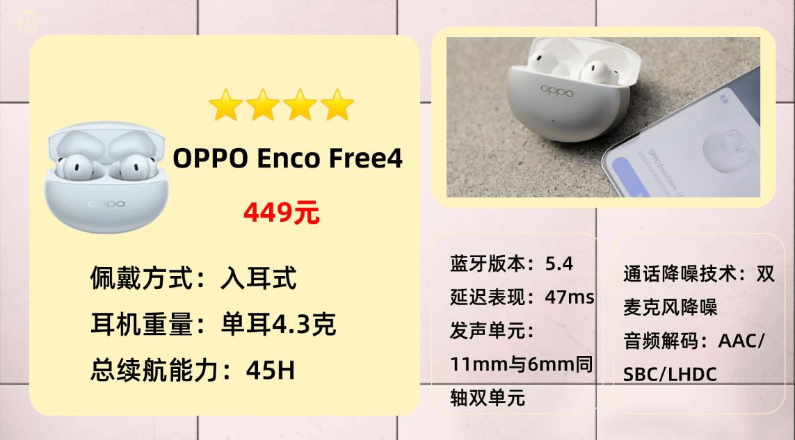入选产品第七名:O PPO E nco Free4蓝牙耳机