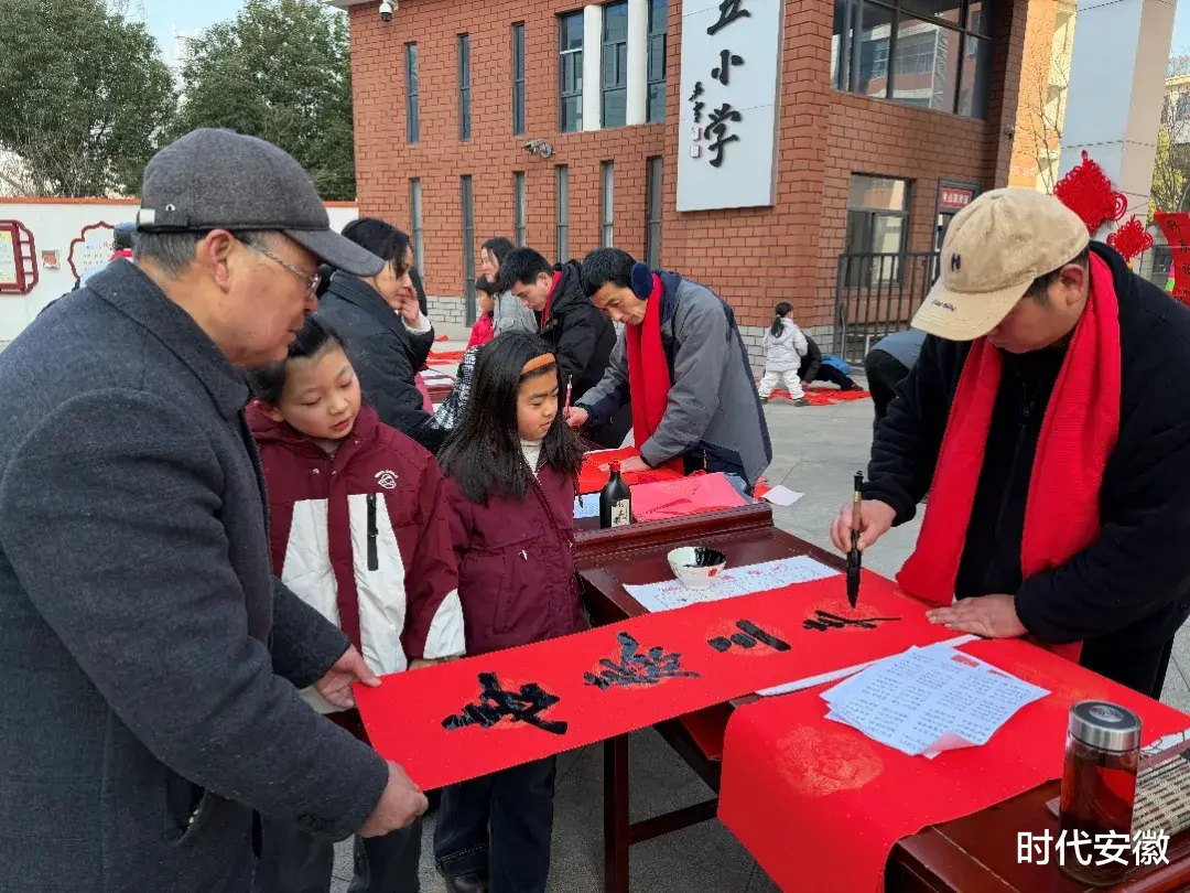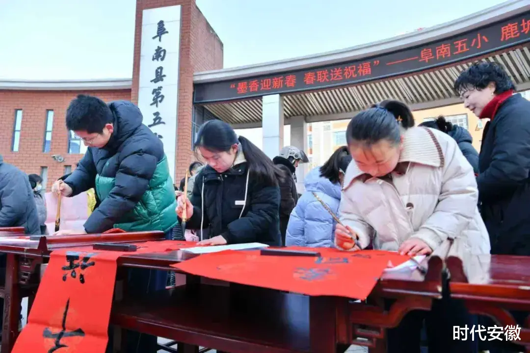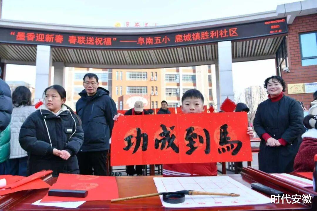 旧岁展锦,新年奋进。愿墨香常伴、福运相随,愿传统文化之花在阜南五小常开长盛,祝全体师生、家长新春喜乐、万事顺意!
