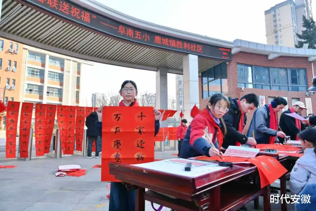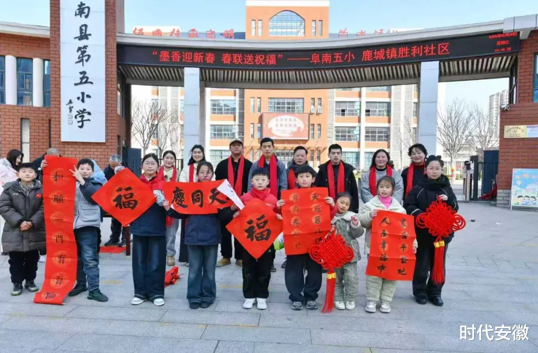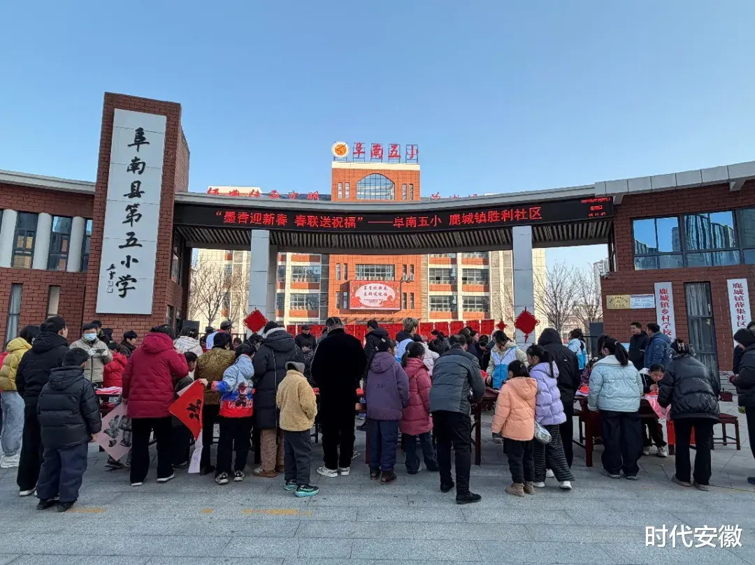 岁末寒冬,年味渐浓。笔墨遇红纸,书香迎新年,一场充满传统气息的新春活动在阜南五小温情开启。2026年2月8日上午,阜南五小联合鹿城镇胜利社区,在校门口举办“墨香迎新春 春联送祝福”主题活动,擅长书法的师生齐聚现场,以笔传情,喜迎马年新春。