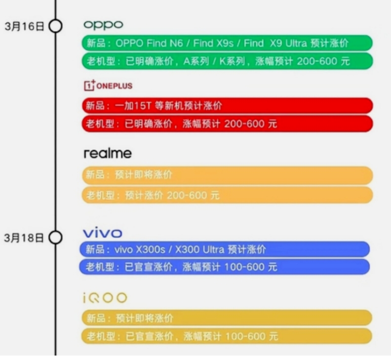 2026年,智能手机行业正经历近五年来规模最大、覆盖最广的一轮涨价潮。受存储芯片价格大幅上涨影响,继OPPO、一加之后,vivo及旗下iQOO也相继宣布上调部分机型建议零售价。在此背景下,消费者对“性价比”与“是否值得买”的判断更为审慎。