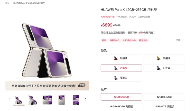 值得一提的是,3月27日至5月5日,购买并激活华为Mate X7、华为Pura X、华为Mate XTs 非凡大师,即可获赠HUAWEI Care+一年期;多款机型支持支付宝花呗、京东白条等平台至高12期分期免息;Pura X至高优惠 800 元、Mate X6至高优惠2000元;Mate X7、X6、Pura X 购机 2 年内可享内外屏各 4 次免费贴膜,Mate XTs 享 4 次屏幕免费贴膜;购买鸿蒙折叠电脑可享 15% 国家补贴(最高优惠 1500 元),4 月 30 日前线上官方渠道购买可享 12 期分期免息。