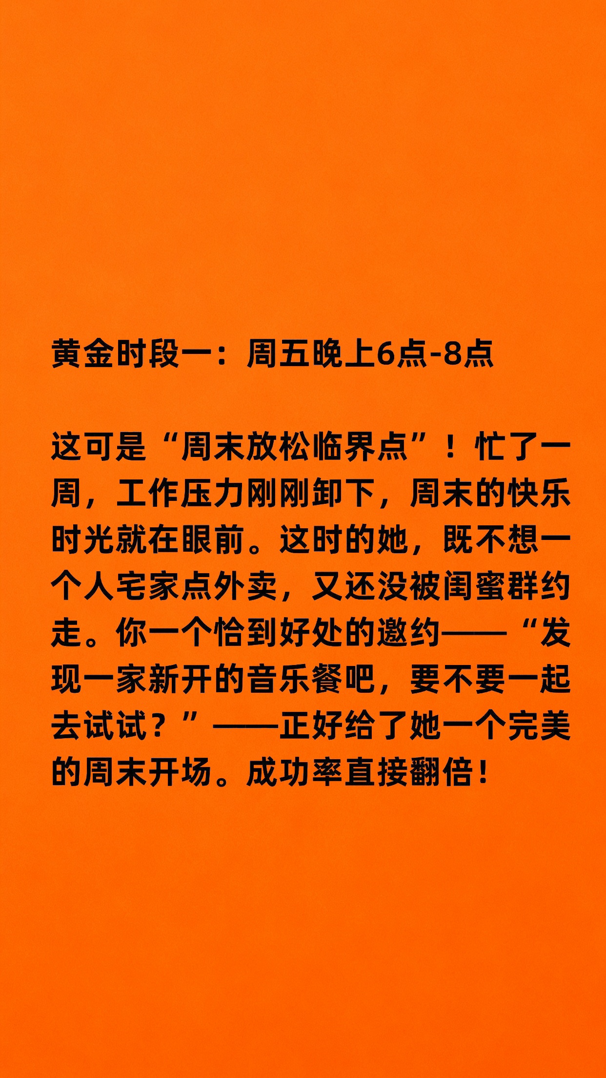 真正的邀约,从来不靠运气,而是靠懂你。别再盯着手机上的时间,去关注她情绪的晴雨表吧。在她兴高采烈分享成就时,你的邀约是锦上添花;在她偶尔失落需要肩膀时,你的出现是雪中送炭。更是在她谈及梦想眼睛发光时,你递上共鸣;在她疲惫不堪时,你送上轻松。真正打动人心的,不是你说了什么,而是你在她最需要的时候,恰好出现。爱意在细节,更在时机,当你的关心踩准了她情绪的节拍,心动便会悄然而至。