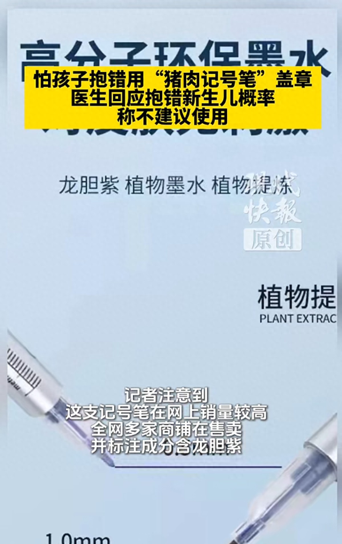近日,浙江一名准爸爸在网上介绍着他准备的陪产包时,拿出了一支“猪肉记号笔”,说孩子出生后画上记号,以防在医院抱错。