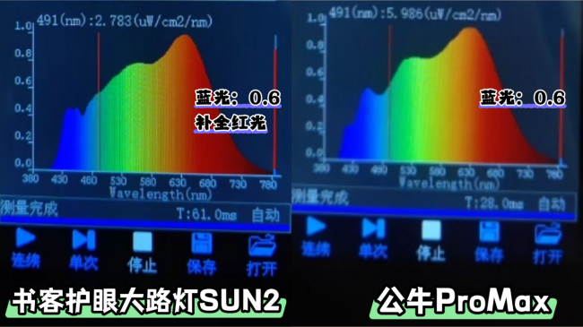 书客SUN2采用SunSilk Pro™类太阳全光谱灯珠,精准预制40%有害波段蓝光,并搭载RRT2.0红光养眼技术,补充680nm波段的红光,光谱覆盖约380–780nm,从视觉、生理与心理三大维度对用眼健康进行科学保护,整体光线更接近自然光,实现有效缓解83%视觉疲劳的同时减低92%的近视风险,而公牛ProMax虽然是紫光激发,但从现实总来看,舒适度会逊色一些,如果更看重整体护眼表现,书客SUN2会更适合一些。