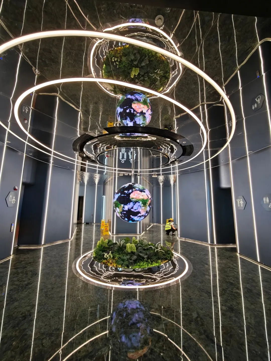 未来感和服饰的主题洗手间,非常酷炫,怎么着,也得留几张影才对。