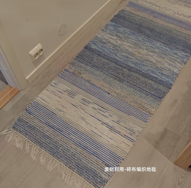很多人觉得北欧地毯又简单又好看,其实按照当地的习惯来说,也和我们这边差不多,都会把碎布重新利用,做个床单被罩亦或是地毯,踩在脚下既不心疼又好看,只不过加了流苏,增加了些高级感。