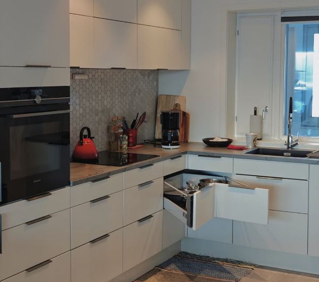 总之,跟着这位挪威房东,我也算是学到了不少装修妙招,上面这几处装修,无论是可以180度折叠的浴室门、玄关的开放式衣帽架,还是厨房中的转角抽屉,都让人眼前一亮,直呼佩服!