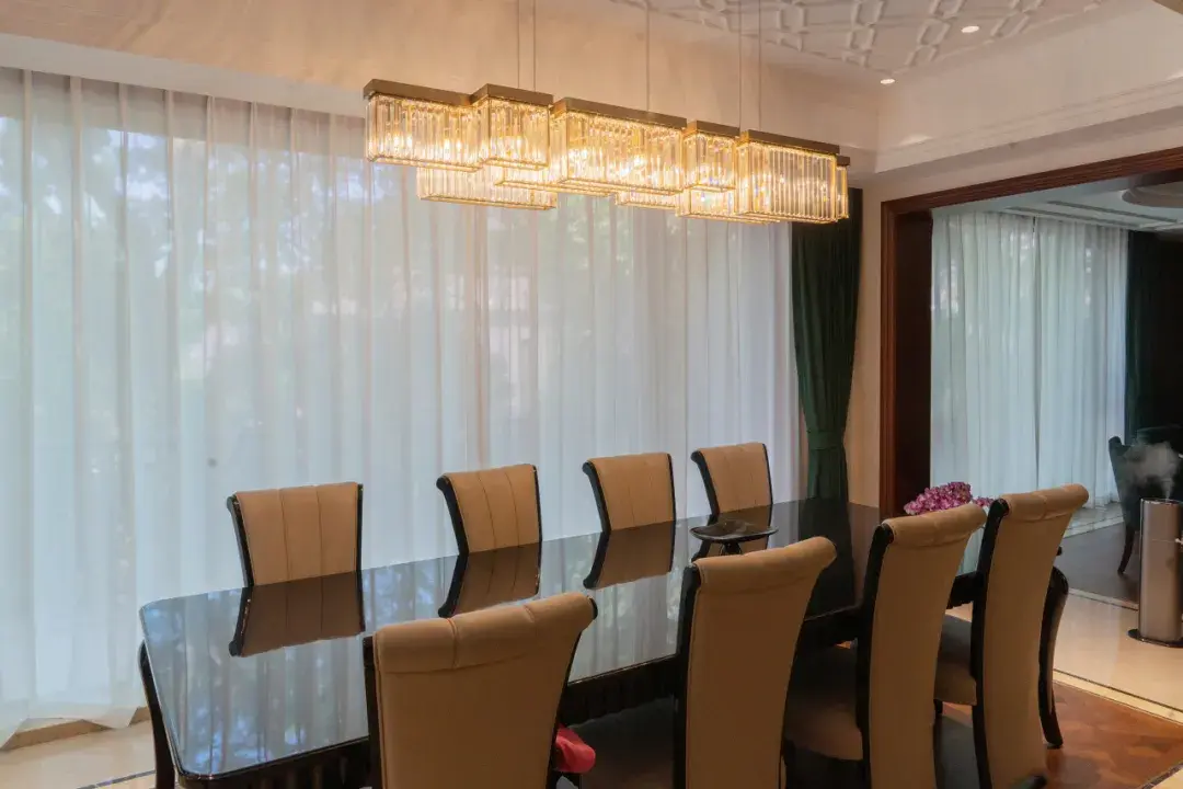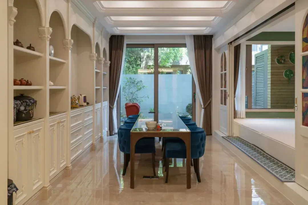 设计师根据业主偏好,将西式简欧的浪漫明媚与中式的内敛气质搬进这座私宅。