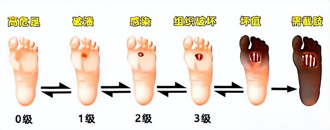 或是在泡脚、洗澡的时候可能会被烫伤,出现皮肤损伤或感染。因为感知延后,这些小的伤口就很可能得不到及时的处理,发生恶化,发展为溃疡、感染,甚至坏疽,又可能面临截肢等严重后果。