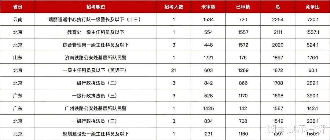 截止至10月19日17点,2026年国家公务员考试报名人数前十的岗位: