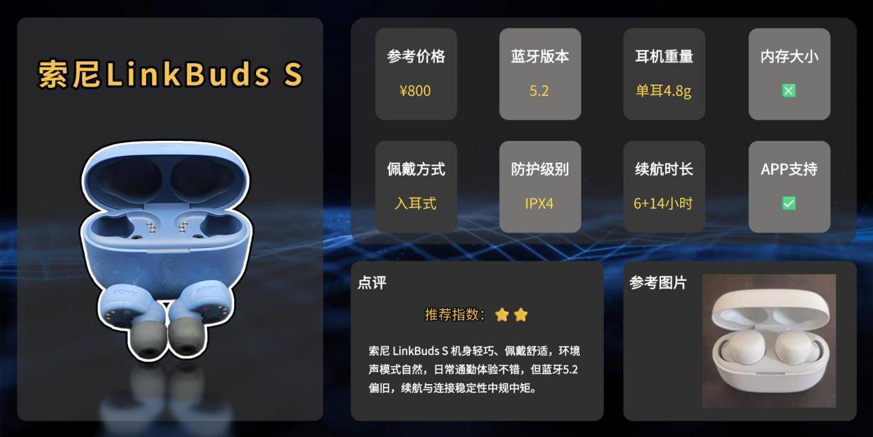 LinkBuds S防护适合日常防汗防溅水,但不适合下水或高强度户外运动。续航约20小时,基本可以满足一天的通勤或办公需求。整体来看,它更偏向轻量佩戴、日常通勤和办公场景,兼顾环境声通透体验和舒适度,非常适合长时间佩戴的用户。