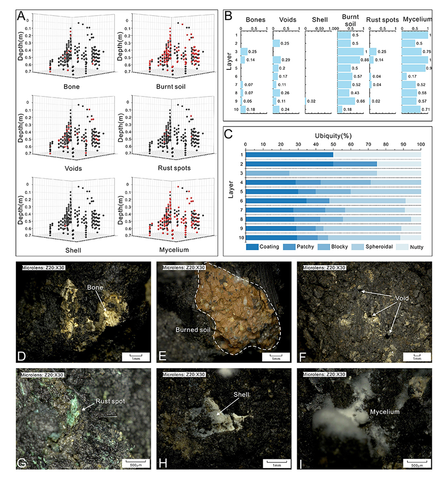 燃烧残留物中各类包含物的分布及代表性示例(来自四川考古)