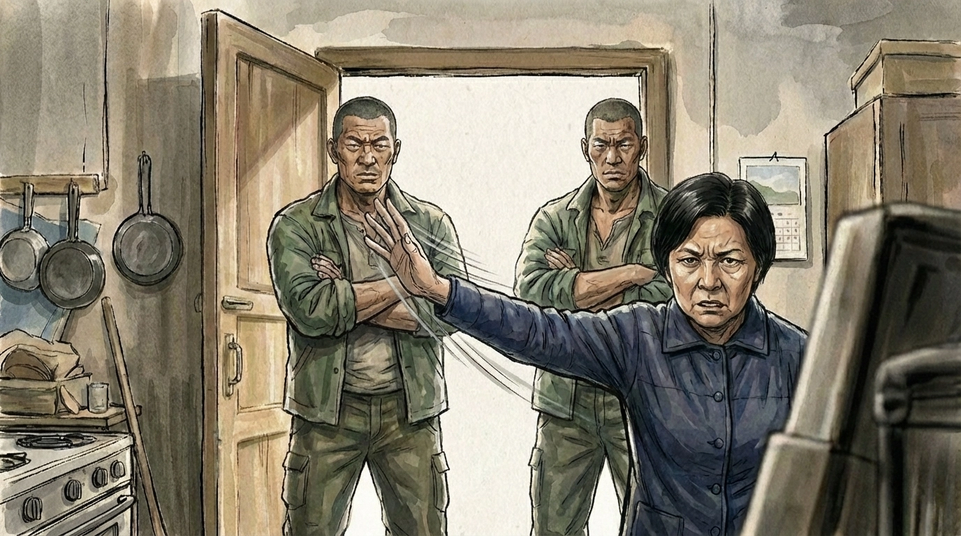 大舅只是冷冷地往前跨了一步,低头看了一眼婆婆。刚才还气势汹汹的婆婆,瞬间像被掐住脖子的鸡,声音戛然而止。