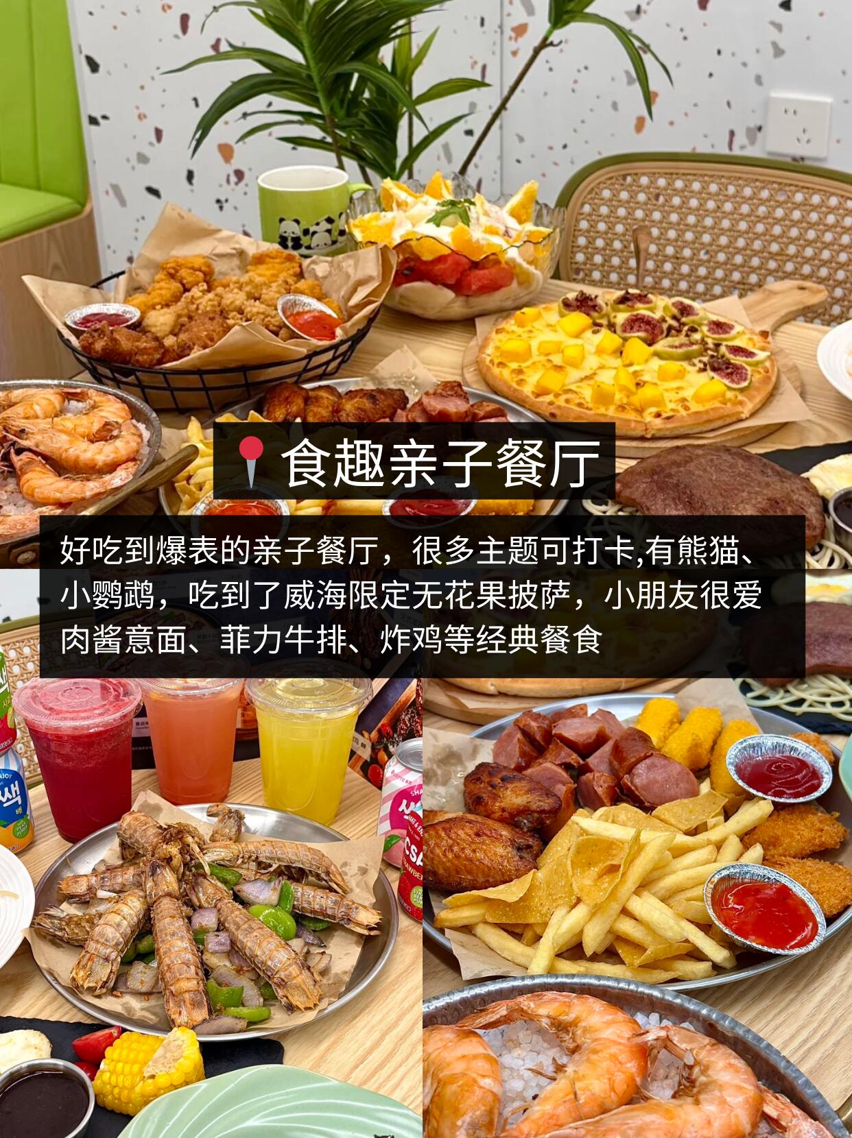 好吃到爆表的亲子餐厅,很多主题可打卡,有熊猫、小鹦鹉,吃到了威海限定无花果披萨,小朋友很爱 肉酱意面、菲力牛排、炸鸡等经典餐食