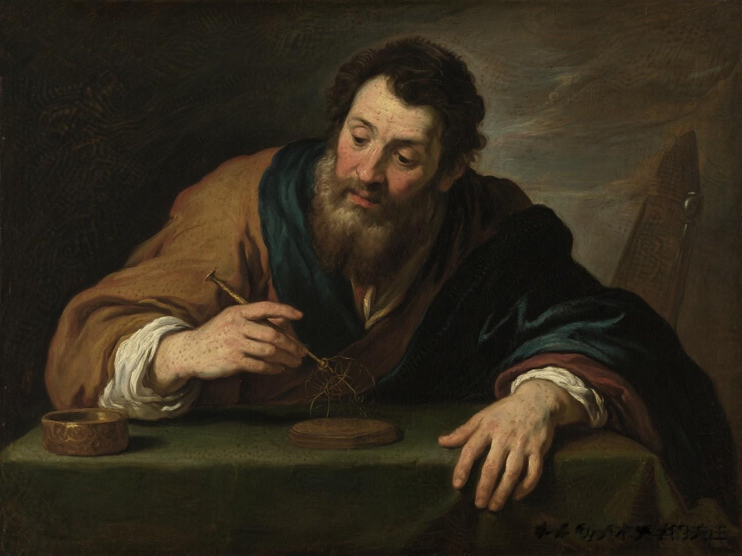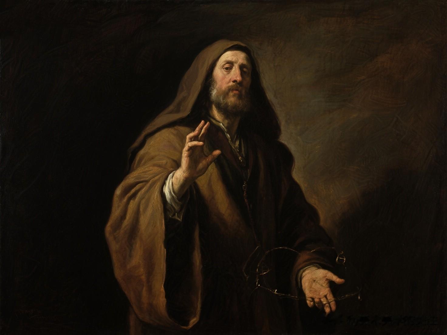 画面展开在眼前,首先映入眼帘的是那强烈的明暗对比。卡拉瓦乔如同一位光影的魔法师,他用黑暗与光明构建起整个场景的架构。黑暗如同神秘的幕布,笼罩着画面的大部分空间,给人一种压抑而神秘的氛围。然而,就在这黑暗之中,几束光线如同舞台上的聚光灯,精准地打在人物的关键部位。这种光影的处理,不仅仅是为了营造视觉上的冲击力,更是一种对人性的隐喻。在生活中,我们每个人都在光明与黑暗之间徘徊,而这幅画中的光影,恰如人性中的善恶、美丑的交织。