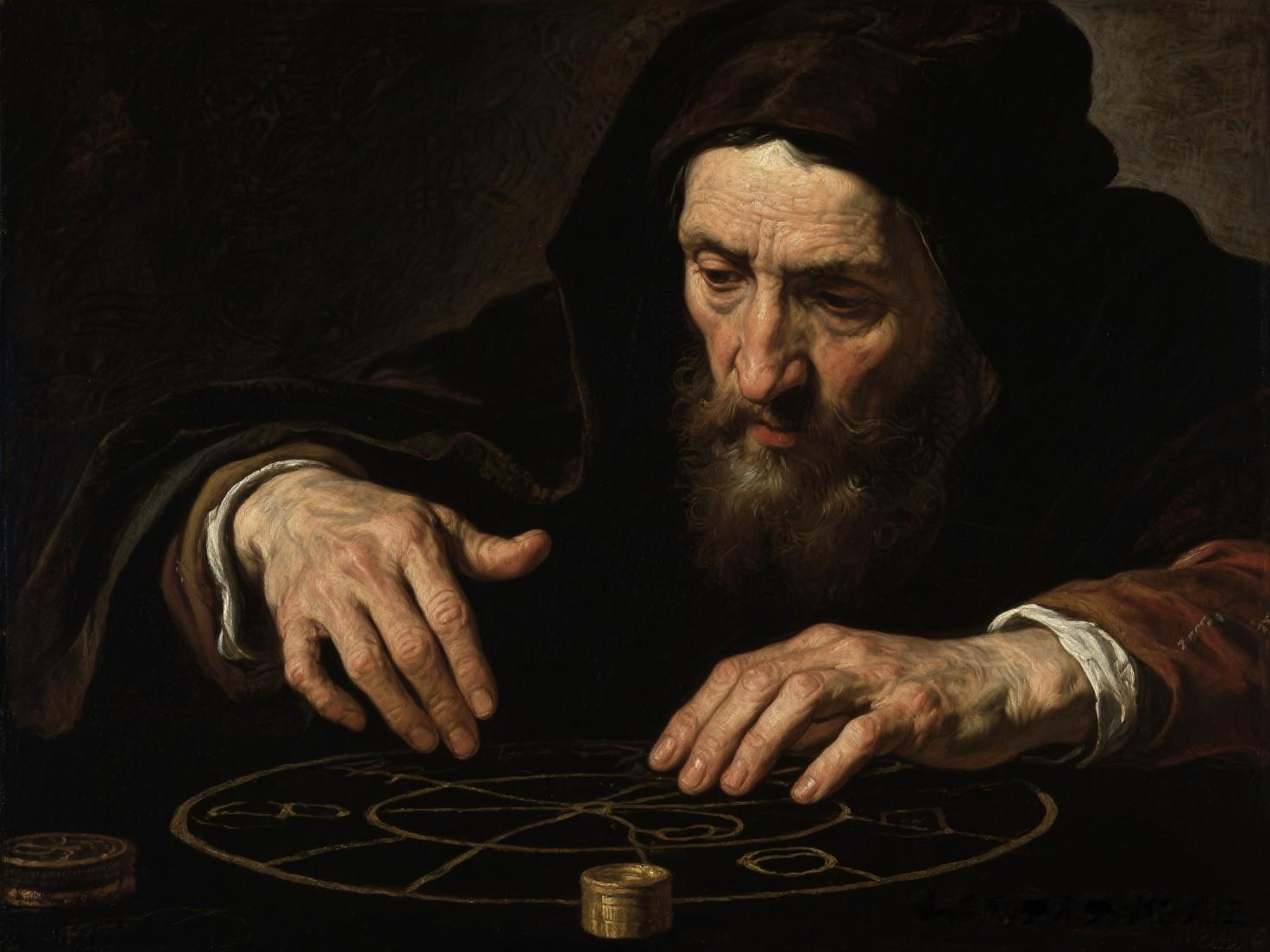 而那位年轻人,他的表情充满了好奇与轻信。他微微前倾的身体,专注的眼神,都显示出他对占卜者的话语深信不疑。他的衣着相对华丽,表明他可能来自一个较为富裕的家庭。然而,他在占卜者面前却显得如此单纯和幼稚。这一对比,让我们看到了人性中的弱点。无论贫富贵贱,人们都可能在面对未知时失去理性,被他人所利用。