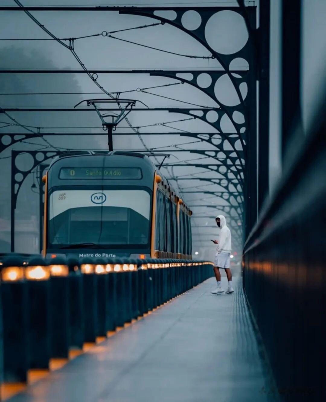 • 阴天的柔和质感:波尔图地铁的作品,弥漫的雾气与散射光让画面呈现出冷调的灰蓝色,软光弱化了明暗对比,突出了地铁建筑的工业细节——黑色金属结构的曲线、站台的冰冷质感,软光让这些细节被温柔地呈现,营造出“孤独的城市通勤”的静谧氛围。
