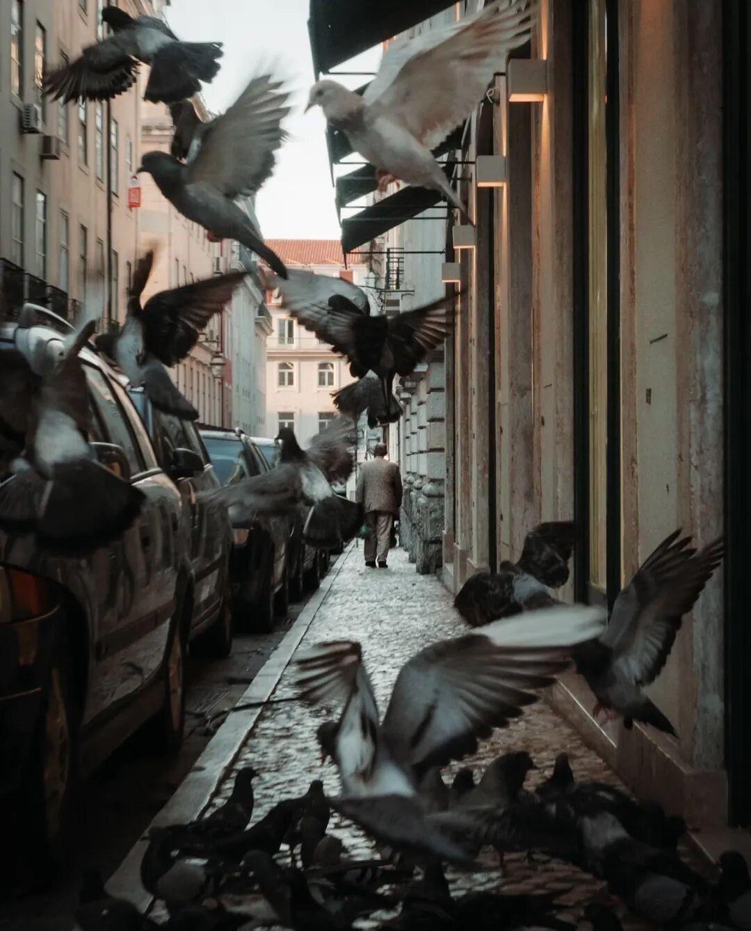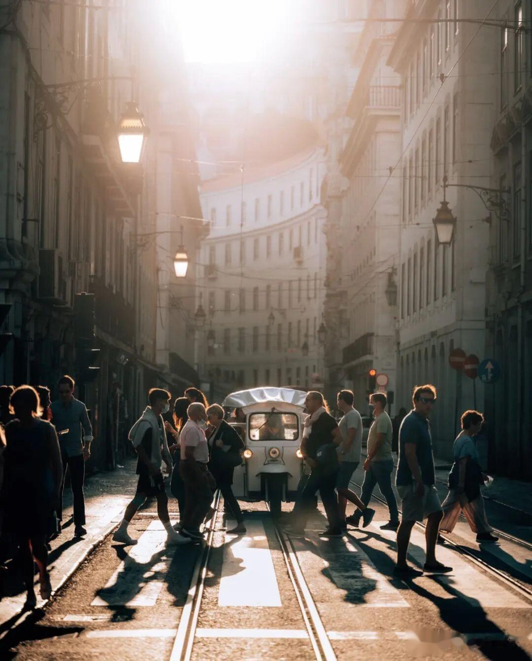 • 里斯本街道的作品,暖金色的阳光(暖调)与建筑的冷灰色墙面、人物的冷调衣着形成对比,暖调的光赋予画面活力,冷调的建筑与人物则传递出现代感,冷暖对比让画面在“活力与冷静”之间达到平衡,完美诠释了“阳光照耀下的现代都市生活”。