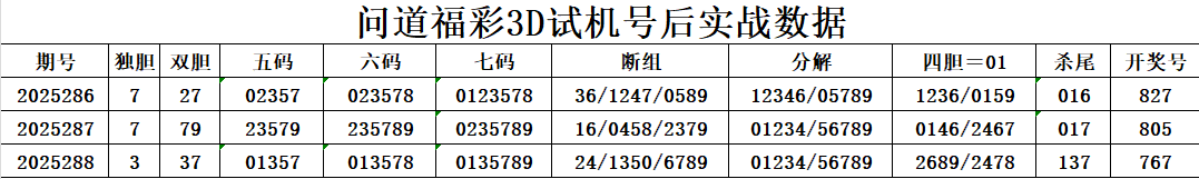 金胆“7”:连续两期(827、767)都出现了“7”,这在3D走势中极为罕见。它不再是普通的热号,而是统治级的“金胆”。数字“7”集奇数、中等大小、超强热属性于一身,是本期选号的基石,它出现在任何一位的概率都非常高。