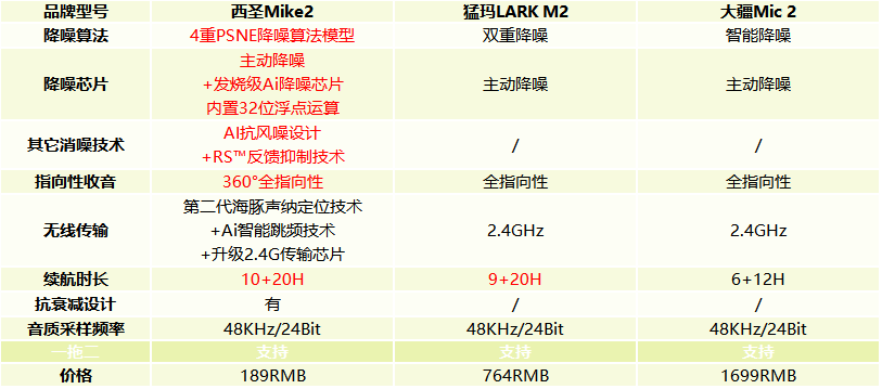 整体来看,三款产品各自定位清晰。西圣Mike2在收音清晰度、降噪纯净度和续航时长三个关键维度上均表现突出,是综合表现最均衡、性价比最高的一款;猛玛LARK M2的一拖二功能对于对话场景非常友好,整体性能稳定;大疆Mic 2则兼具良好设计、生态系统和设备兼容性。不同用户可以根据实际需求选择,但如果在意音质、降噪和续航的综合表现,西圣Mike2的优势会更为明显。