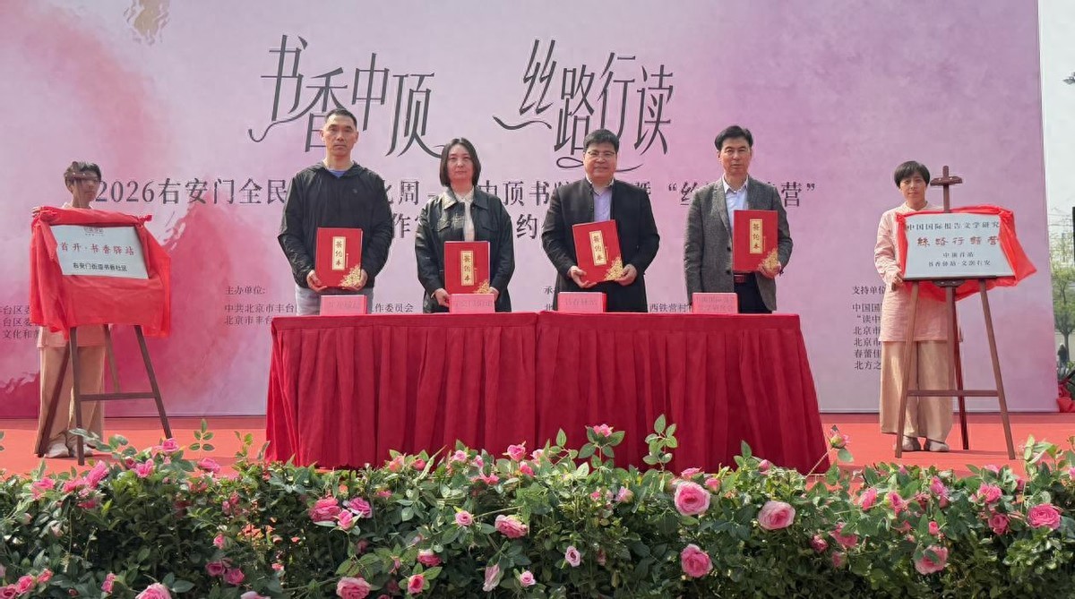 当日,中国报告文学研究会旗下品牌“丝路行读营”携百名作家“藏品”入驻,并与右安门中顶书院、书香驿站联合签署战略合作协议。随之,中顶书院正式揭牌,“书香驿站”同步向公众开放,实现三方联动,共同围绕“政府引导、专业运营、国企支持、文化注入”的全民阅读合作新模式,为基层公共文化空间的可持续发展提供有力支撑。