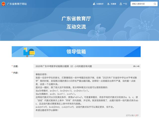 通过广东省教育厅的“领导信箱”咨询本题的解答