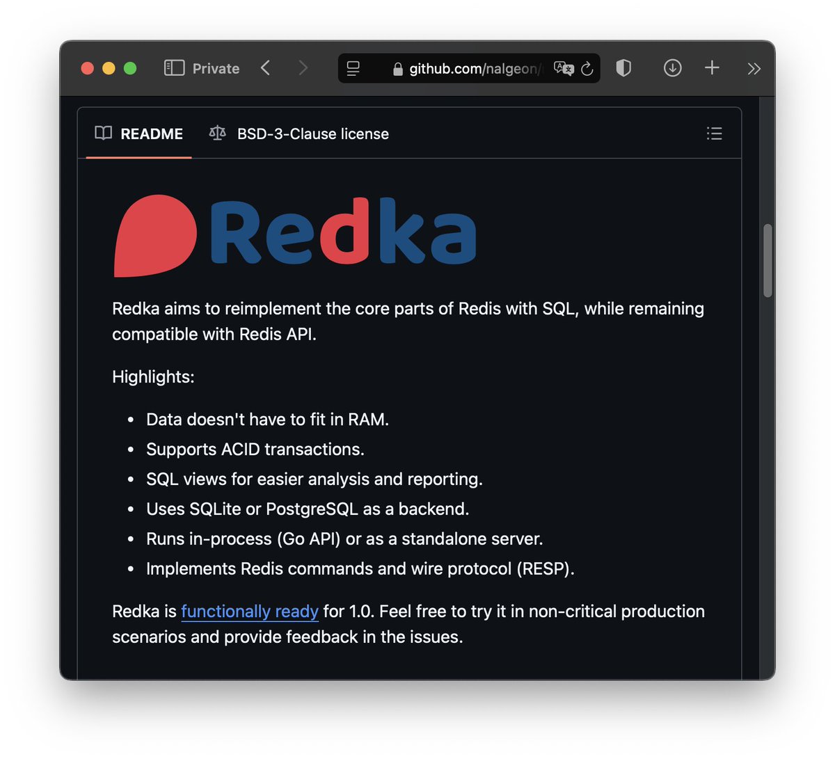 如果你正在构建一个轻量级应用、边缘设备系统,或希望快速搭建一个持久化 KV 存储,Redka 值得你尝试。