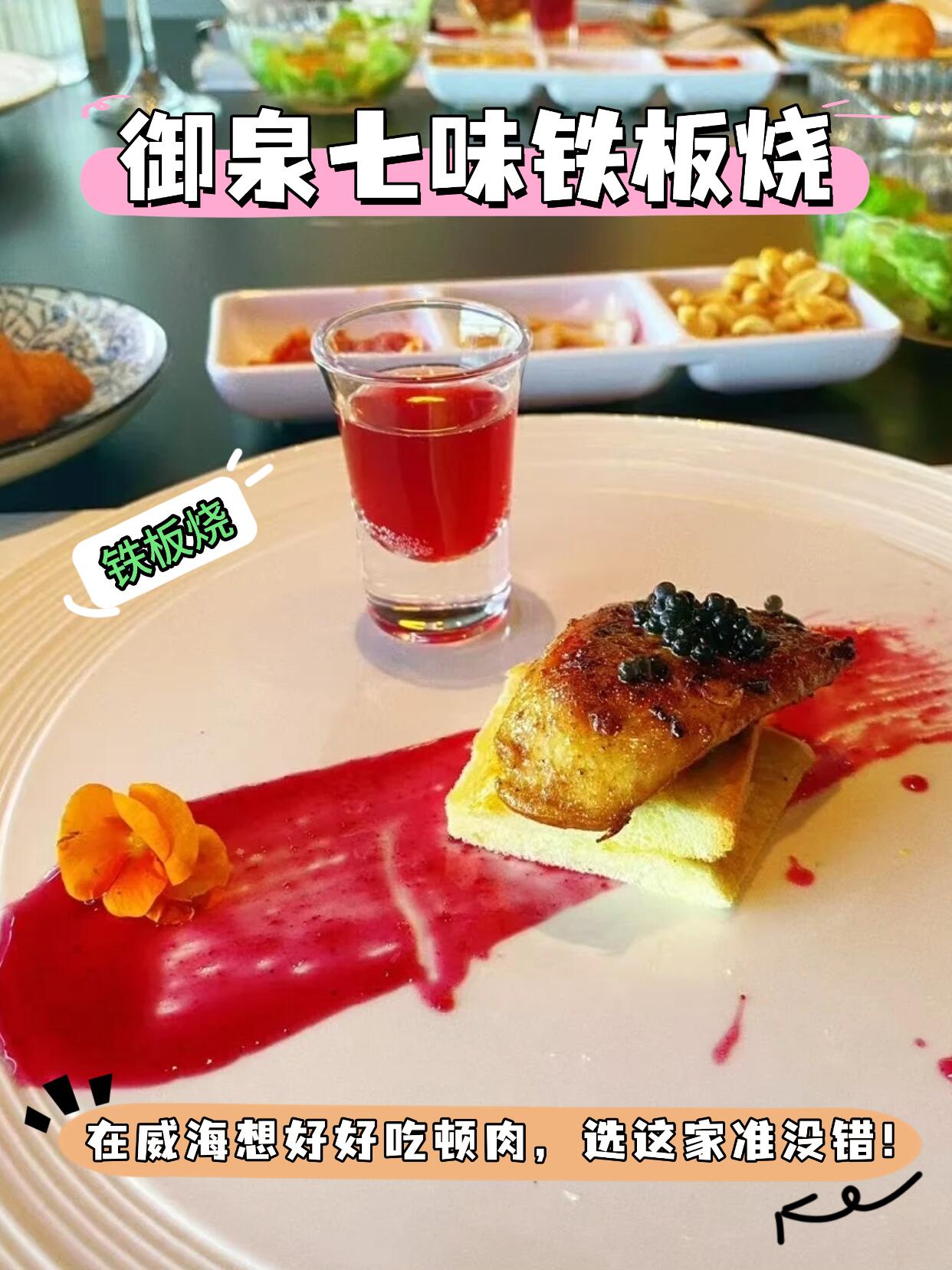 🔥御泉七味铁板烧:在威海想好好吃顿肉,选这家准没错!铁板师傅当着面现做,滋滋的声响特别有食欲👂,铁板大虾壳脆肉嫩,黑椒牛排切的时候能看到汁水,配着裹了铁板香的蔬菜炒饭,每口都填得满💯,吃完特别顶饱~