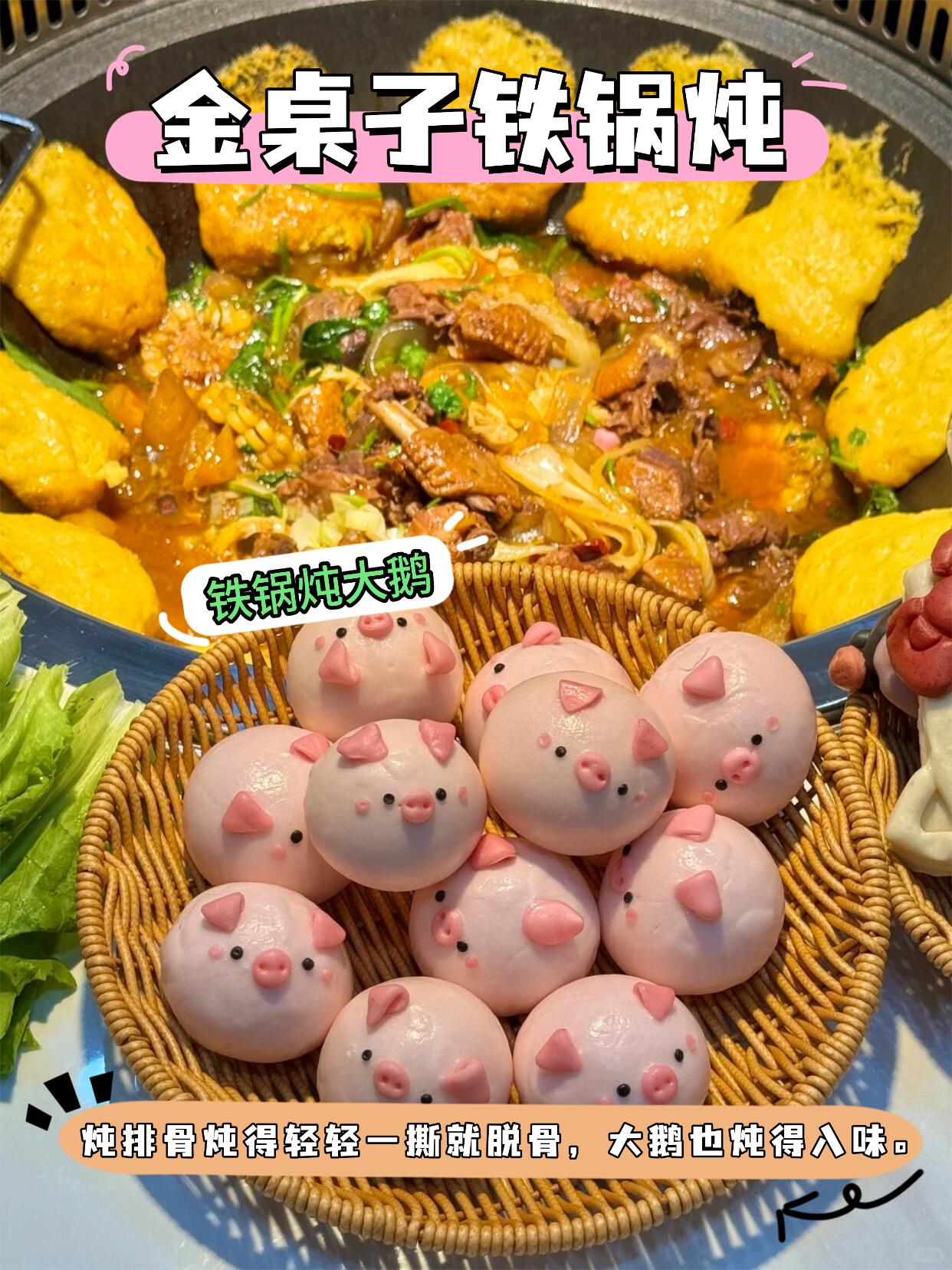 🥘金桌子铁锅炖:威海天冷的时候吃这个太合适了!我和家人去了两次,炖排骨炖得轻轻一撕就脱骨🥩,大鹅也炖得入味。汤汁拌米饭我能多吃一碗🍚,锅边贴的玉米饼,贴着锅的地方脆,蘸着汤吃特别入味,农家风的环境透着烟火气,围坐一起吃着暖乎乎的❤️~