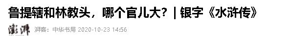 信息来源:澎湃新闻2020-10-23 发布的关于《鲁提辖和林教头,哪个官儿大?| 银字《水浒传》》的报道