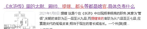 信息来源:上游新闻2021-01-08发布的关于《《水浒传》里的太尉、殿帅、提辖、都头等都是啥官,具体负责什么》的报道