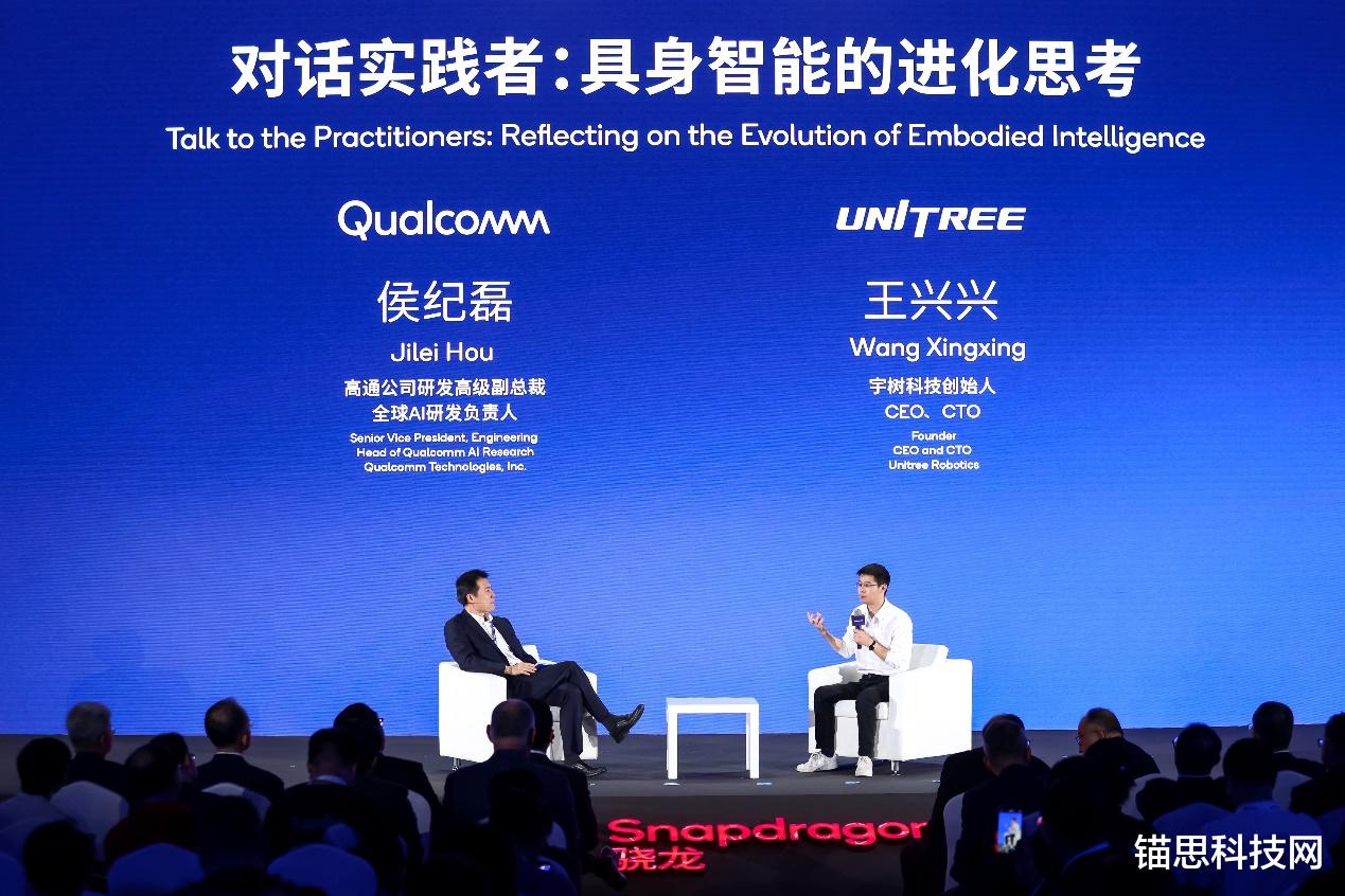 高通全球AI研发负责人侯纪磊与宇树科技创始人、CEO兼CTO王兴兴围绕“具身智能的进化思考”展开对话