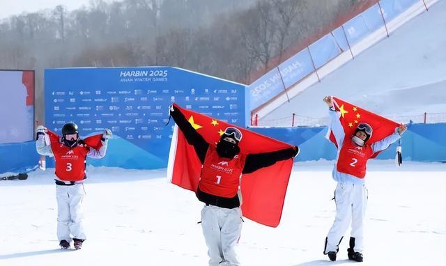 紧接着,自由式滑雪女子大跳台比赛的现场,气氛同样热烈。这项充满挑战和刺激的运动,对运动员的技巧和胆量都是极大的考验。只见中国选手刘梦婷,身姿轻盈,腾空而起,在空中完成了一系列高难度动作,旋转、翻腾、落地,一气呵成,完美无瑕!她如同雪域中的飞燕,在空中自由翱翔,展现出惊人的天赋和精湛的技艺。最终,凭借着出色的表现,刘梦婷毫无悬念地夺得金牌,为中国队再添一金!而她的队友韩林杉和杨如意也表现出色,分别获得银牌和铜牌,为中国队包揽了该项目的前三名,成就一段佳话!这不仅是中国自由式滑雪运动的辉煌时刻,也是中国体育代表团在亚冬会上取得的又一重大突破。