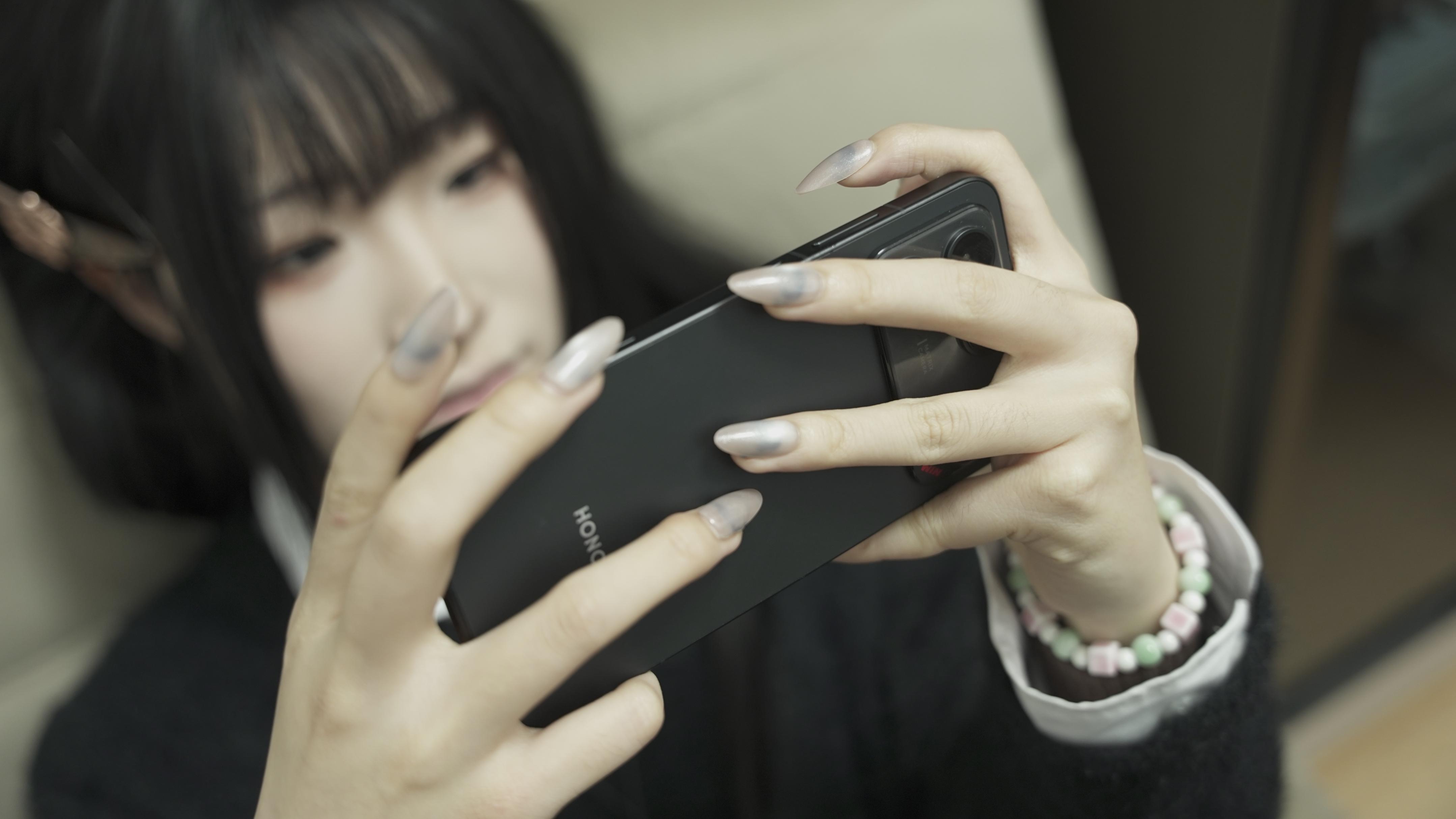 中框磨砂质感带来更细腻的握持反馈,配合黄金弧角与掌适曲线设计,横握时手掌贴合度高,久握不硌手。不论是日常单手使用,还是游戏时双手握住,都有不错的体验。