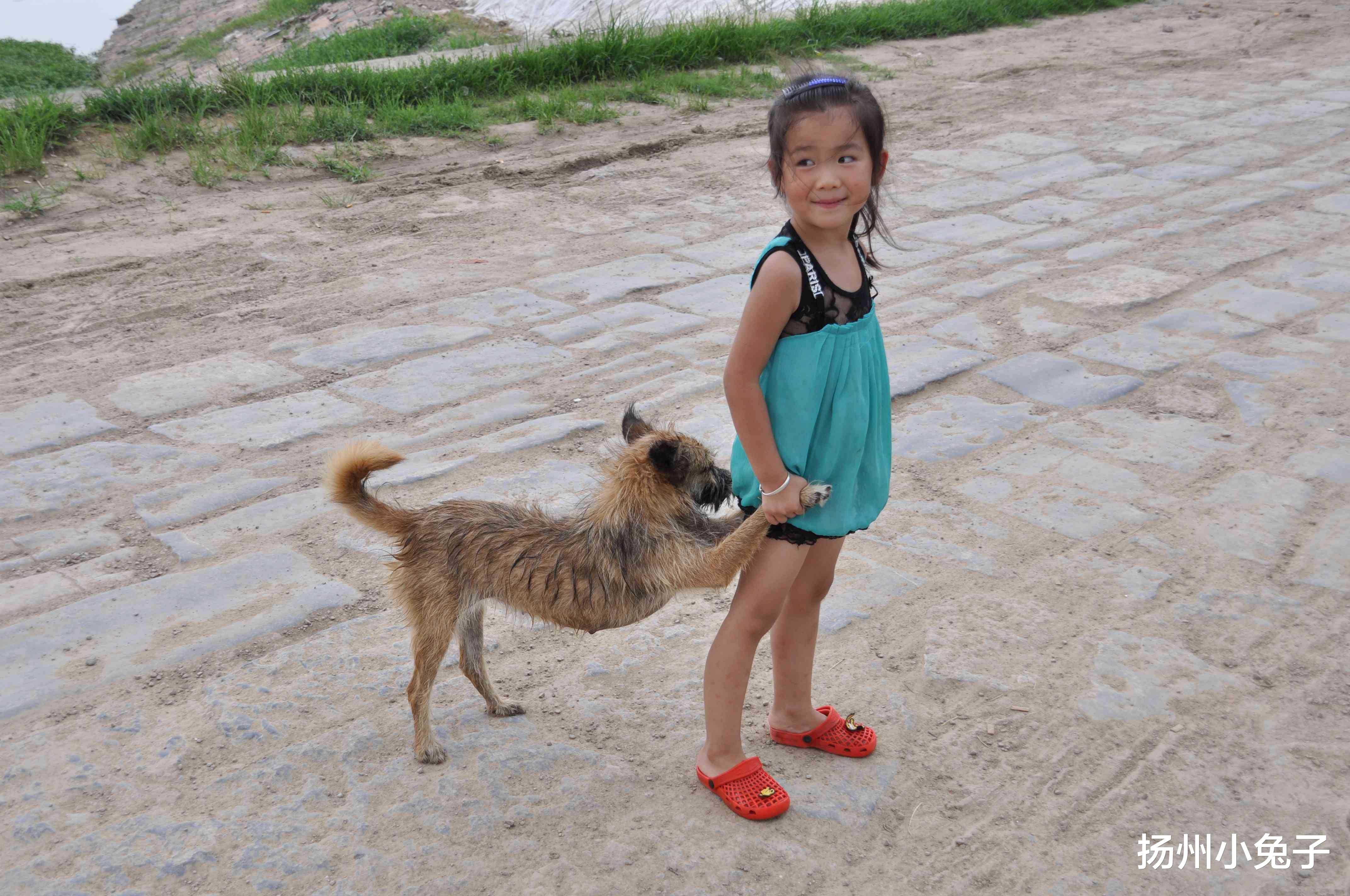 不知道小姑娘发了怎样的口令,那条狗非常配合地走到小姑娘身后。小姑娘随手抄起狗狗的两条前腿,像拉小车一样拉起了狗。狗一声不吭,任凭小姑娘拉着走。人与狗的配合度极高。小姑娘步伐一点不乱地走着,真的像拉了一辆活物车。