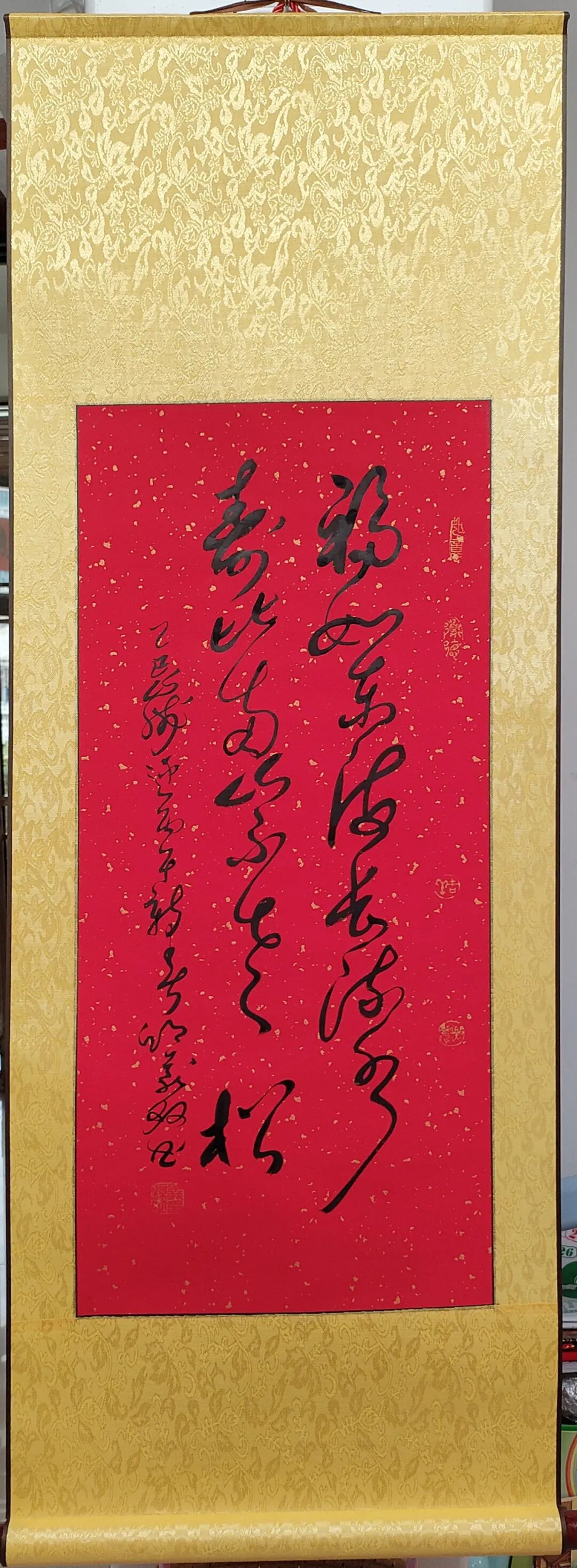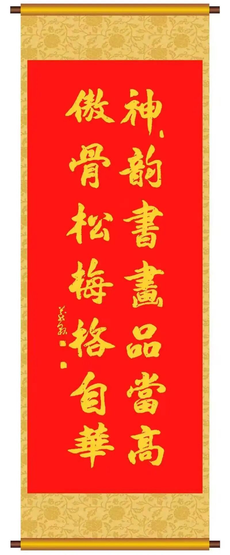 喻中国书法是以文字显形的无声乐章。撰: “神韵书画品当高,傲骨松梅格自华”,与书画道友共勉;撰:“吾心悟道德为本,此书画神韵是根”,以明书道心德。