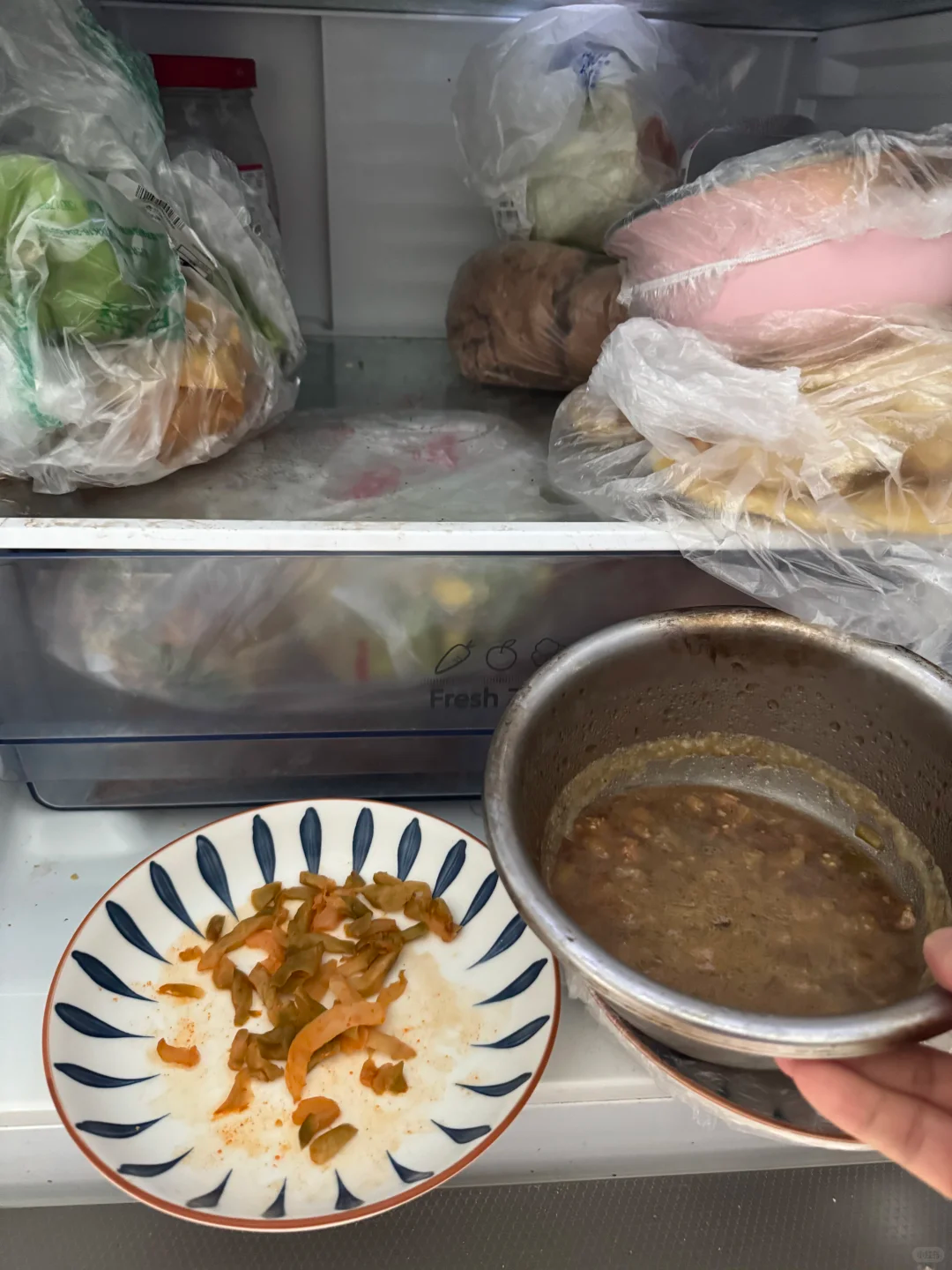 这些剩饭剩菜婆婆又舍不得扔掉,都会选择放在冰箱里,留着下一顿再吃。