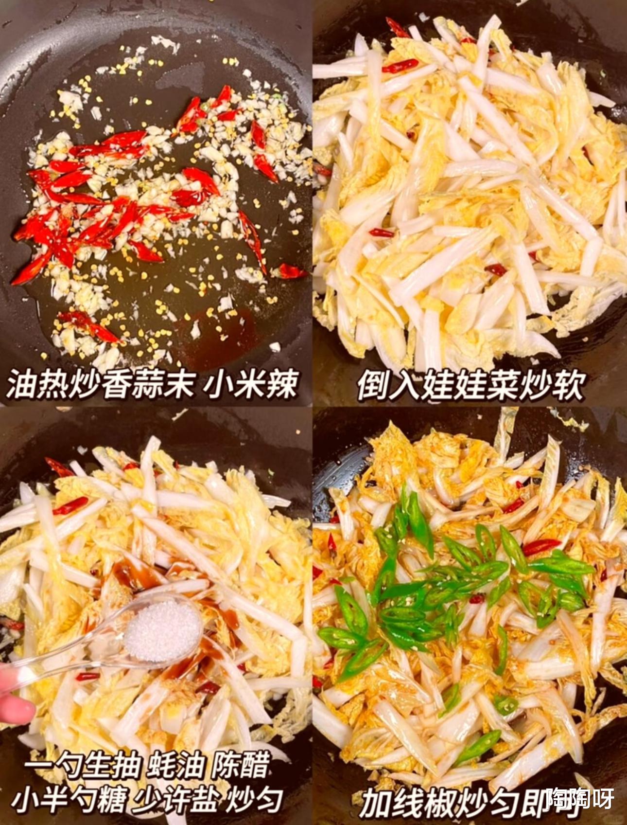 一盘普普通通的娃娃菜,在酸与辣的碰撞中,激发出了最本真的鲜甜,嘎嘎下饭。快去试试吧!