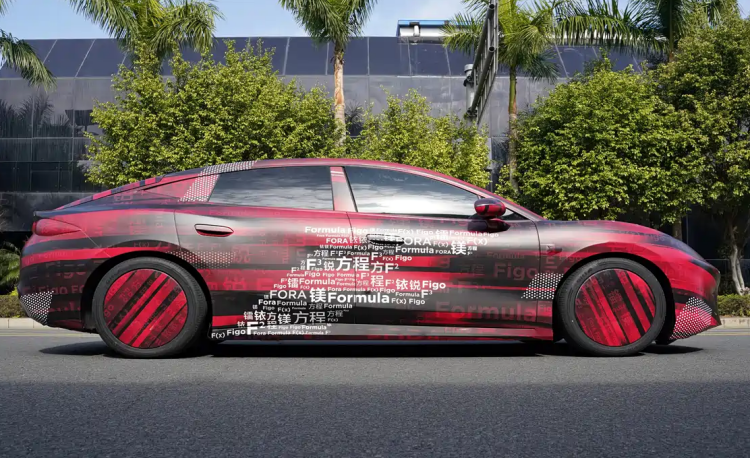 言归正传,我们先来看看方程豹的这款新轿跑,图中的谍照车裹着黑红颜色的车衣,车衣上还印有方程豹的拉花,虽然车衣裹得严实,但看车标能看出来是方程豹的LOGO,新车设计的比较低趴,底盘离地间隙很低,车顶还有激光雷达,这也意味着该车可能会搭载比亚迪的天神之眼智驾系统。