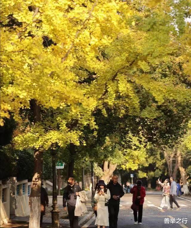 年轻人们三三两两相约树下,摆出各式姿势拍照留念;家长则牵着孩子的手漫步其间,看落叶轻舞,让孩子亲手触摸这份独属于深秋的温柔。青年男女在此定格青春与秋景的同框,大人们带着孩子踩过落叶、感受微风,这份秋日限定的治愈,让整条路都充满了烟火气。