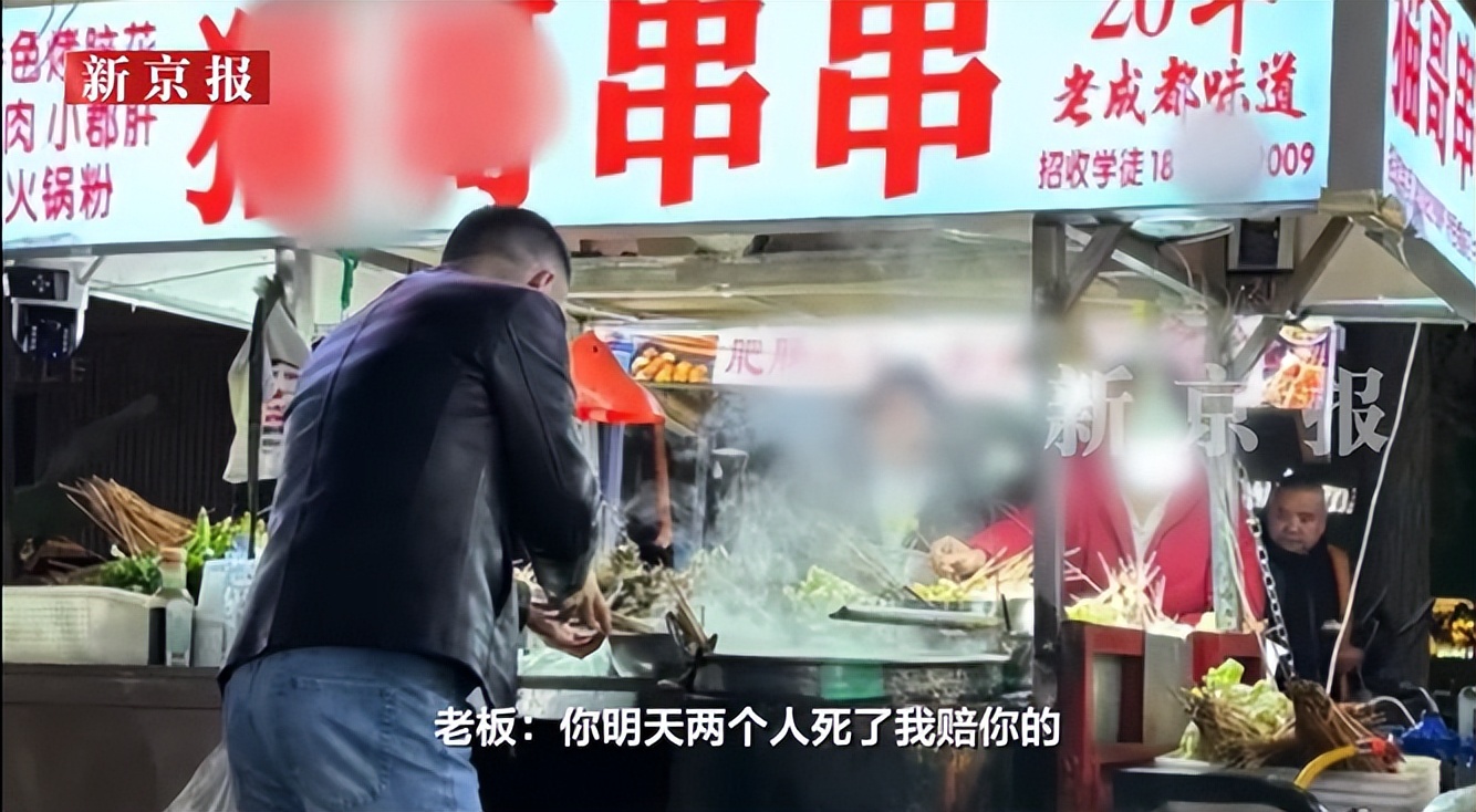 令人意外的是,面对游客的合理质疑,摊主不仅没有丝毫愧疚,反而态度嚣张地回应 “串串都这样”,还直言让游客 “少管闲事”,警告其不要打扰自己做生意,否则 “让你在成都玩得不开心”。摊主的强硬态度让游客十分气愤,随后将相关视频发布到网络,引发众多网友关注。