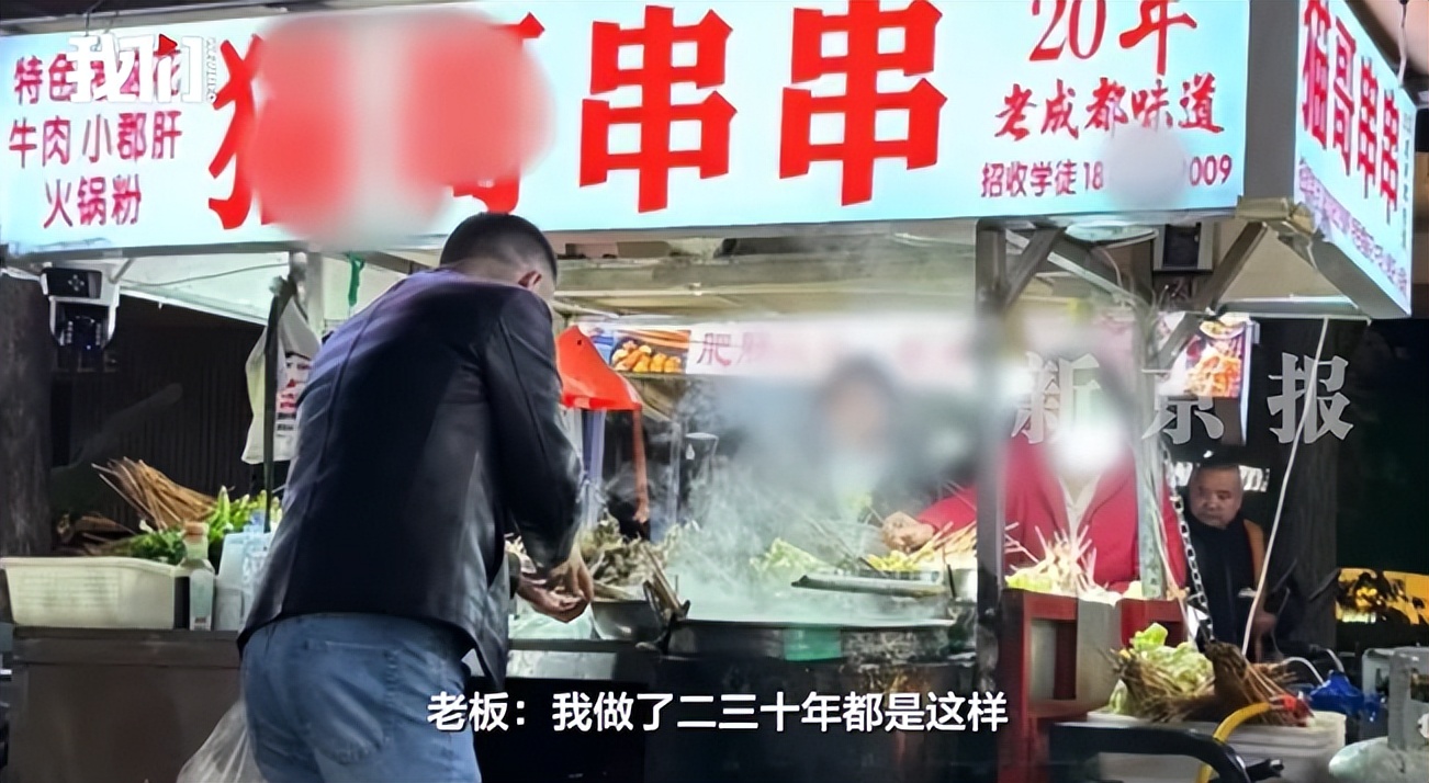 12 月 2 日,一则曝光成都春熙路商圈小吃街乱象的视频在网络引发热议。一名外地游客在游玩时意外发现,街边一家串串摊贩竟疑似回收客人用过的废弃锅底,经过简单处理后再次端给新顾客。