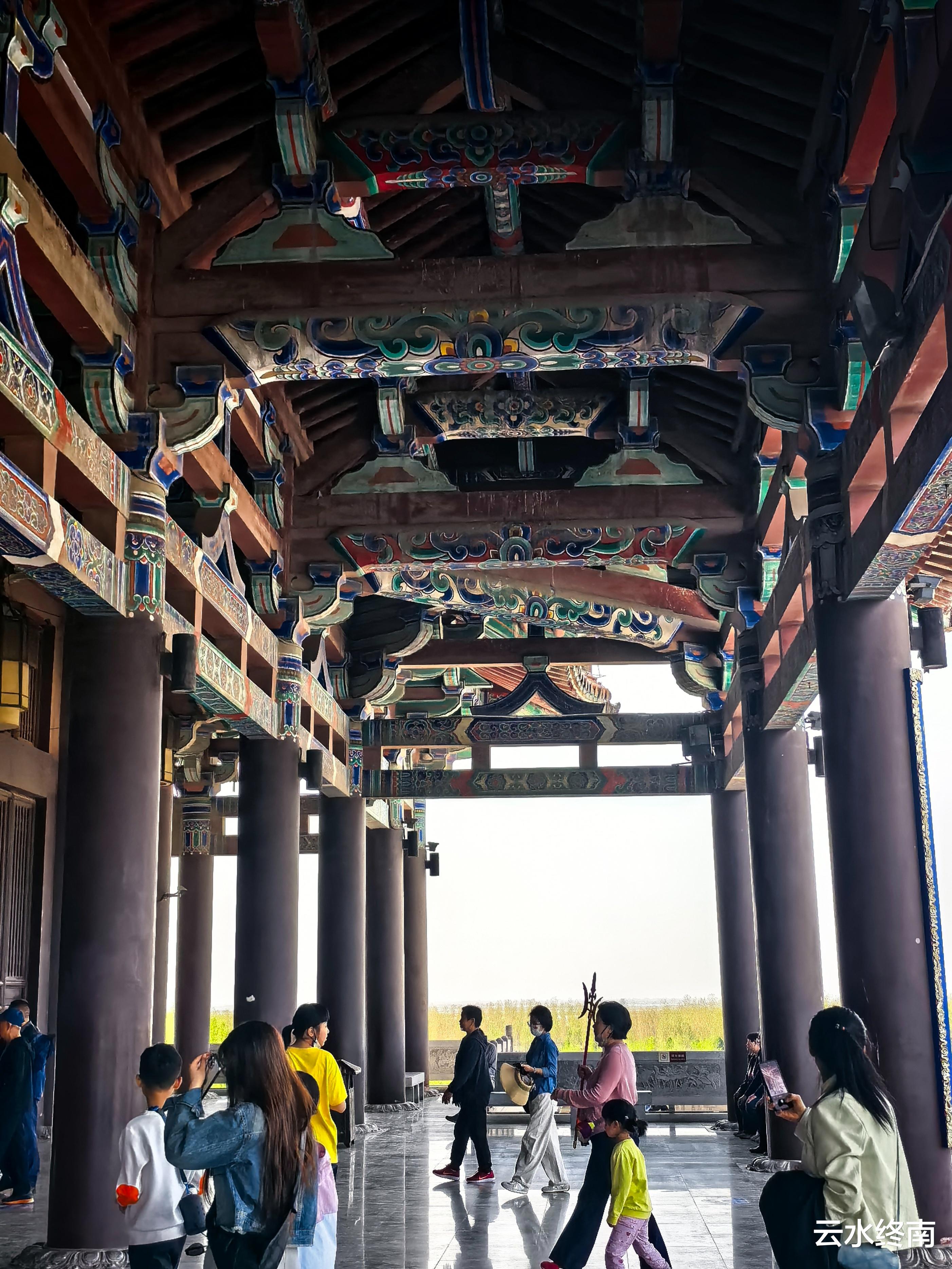 鹳雀楼虽然是现代建筑,但整个的油漆彩画,是国内唯一采用唐代彩画艺术恢复的唐代建筑。之前这种油漆彩画,在国内已经失传。