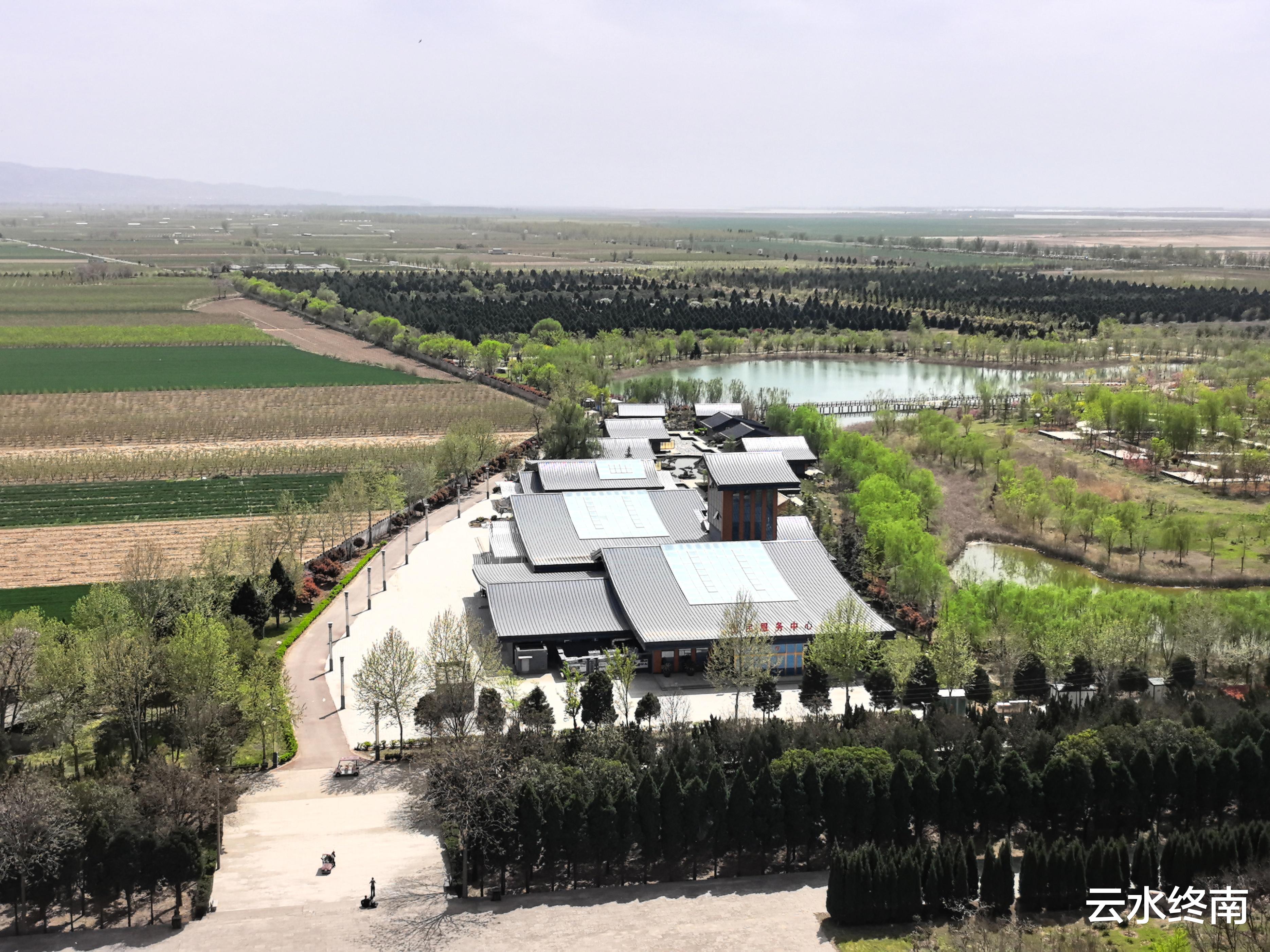现在的鹳雀楼不单单只有一座楼,还是一个风景区,除了一个湖,周边还有大片绿植,景色宜人。