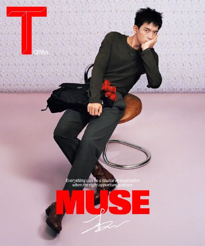 :黑针织搭灰裤选了 “垂坠无收腰” 版型,像油画里的松弛笔触,PRADA 的细针织纹理藏在衣料里,不抢油画的哑光质感;特别版肖像封面,衣料的褶皱顺着他的钝肩线垂落,没有硬撑的轮廓,反而成了油画的 “天然肌理”。T 中文版收官大提琴造型