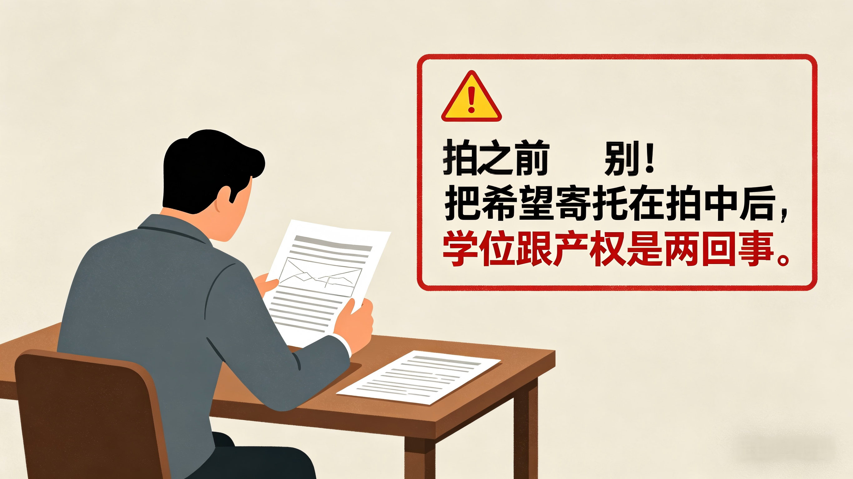 以为拍到房就能自动拿学位,这个想法太绝对了❗学位跟产权是两回事——法院能帮你过户,但学校的学位规则法院管不了。