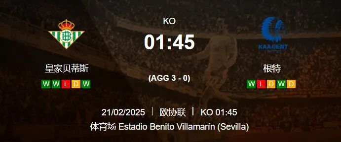 周四004欧协联16强附加赛次回合[西8]皇家贝蒂斯VS根特[比6]时间:2月21日 01:45根特从实力上看,贝蒂斯显