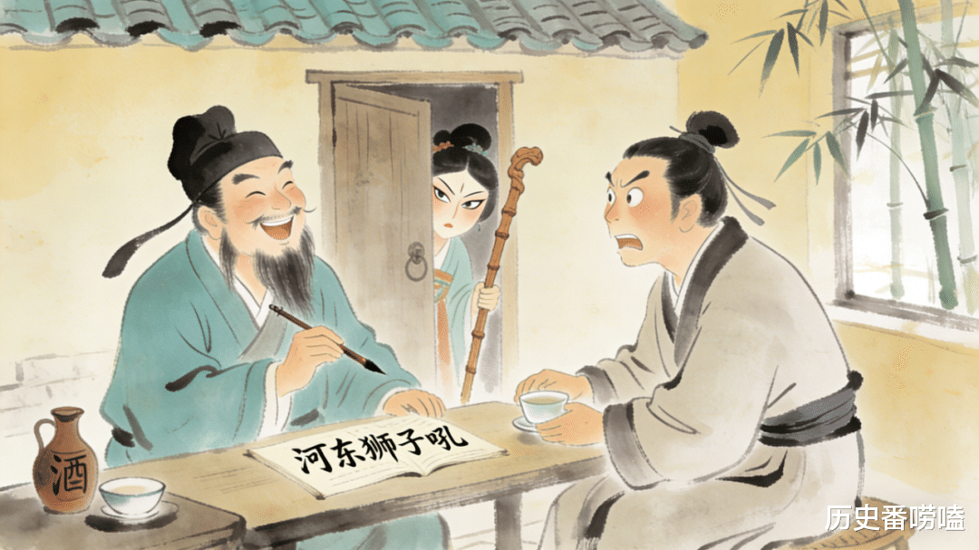 📚 梗的解读:“河东”是柳氏郡望(今山西永济,柳姓望族聚居地),“狮子吼”本是佛家用语喻佛陀说法威严,被苏轼借指柳氏怒声