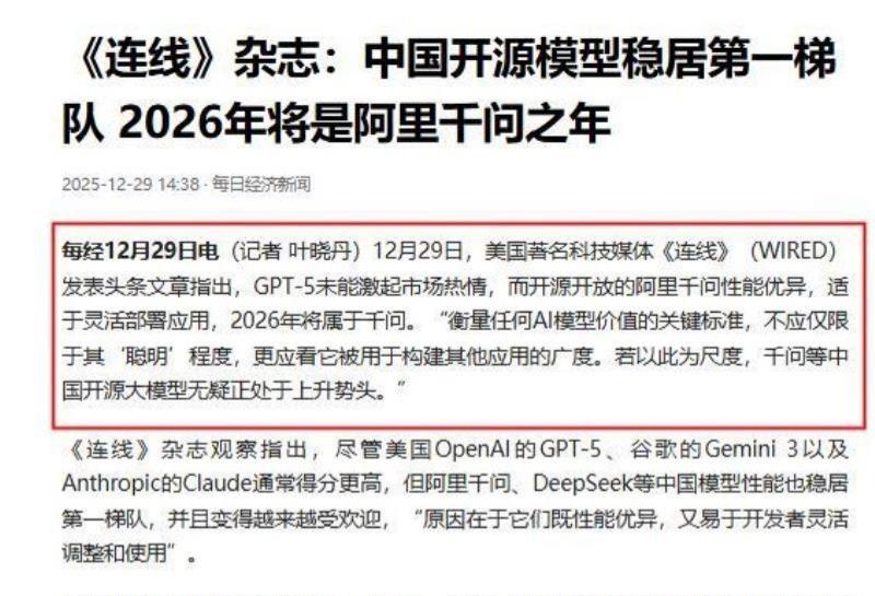 前两天《连线》那篇报道都刷屏了,人家硅谷最硬核的科技媒体就差把“阿里牛逼”写标题上了。说GPT-5根本带不动节奏,反而预测明年是千问的天下。最搞笑的是Meta搞新模型,居然偷偷用阿里千问的技术蒸馏...